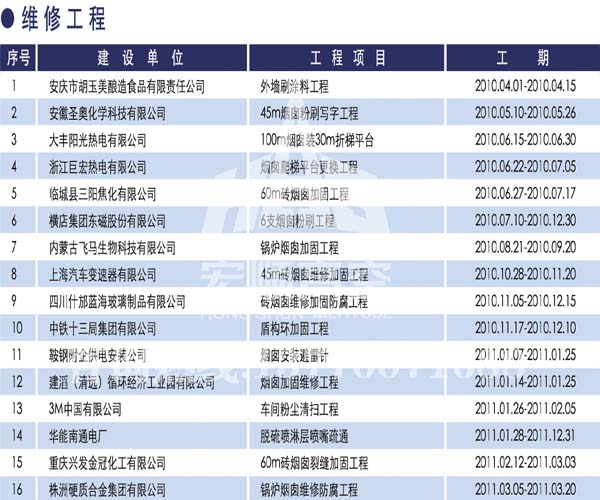 宏順建設工程有限公司是國家批準成立的專業(yè)高空作業(yè)企業(yè):承攬過(國內.國外)煙囪新建、煙囪防腐、磚煙囪新建、煙囪改造、煙囪維修、煙囪脫硫防腐、煙囪拆除加高、煙囪滑膜等高空作業(yè)工程。具有“不搭腳手架 、 不需要停產”施工特點。